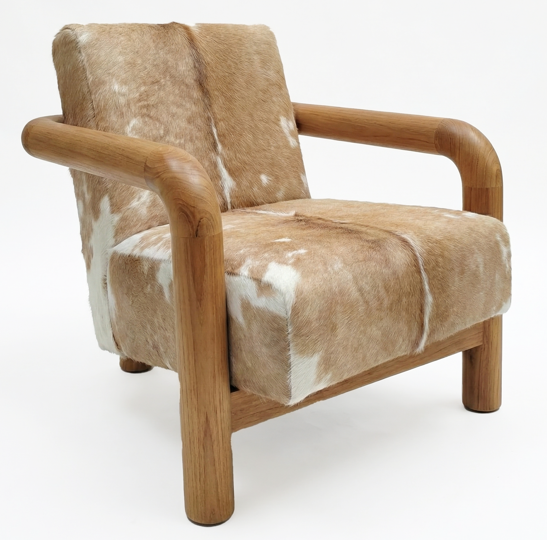 72x78x72 cm Teak Wood - Natural Color Cow Leather - Mix Brown-White