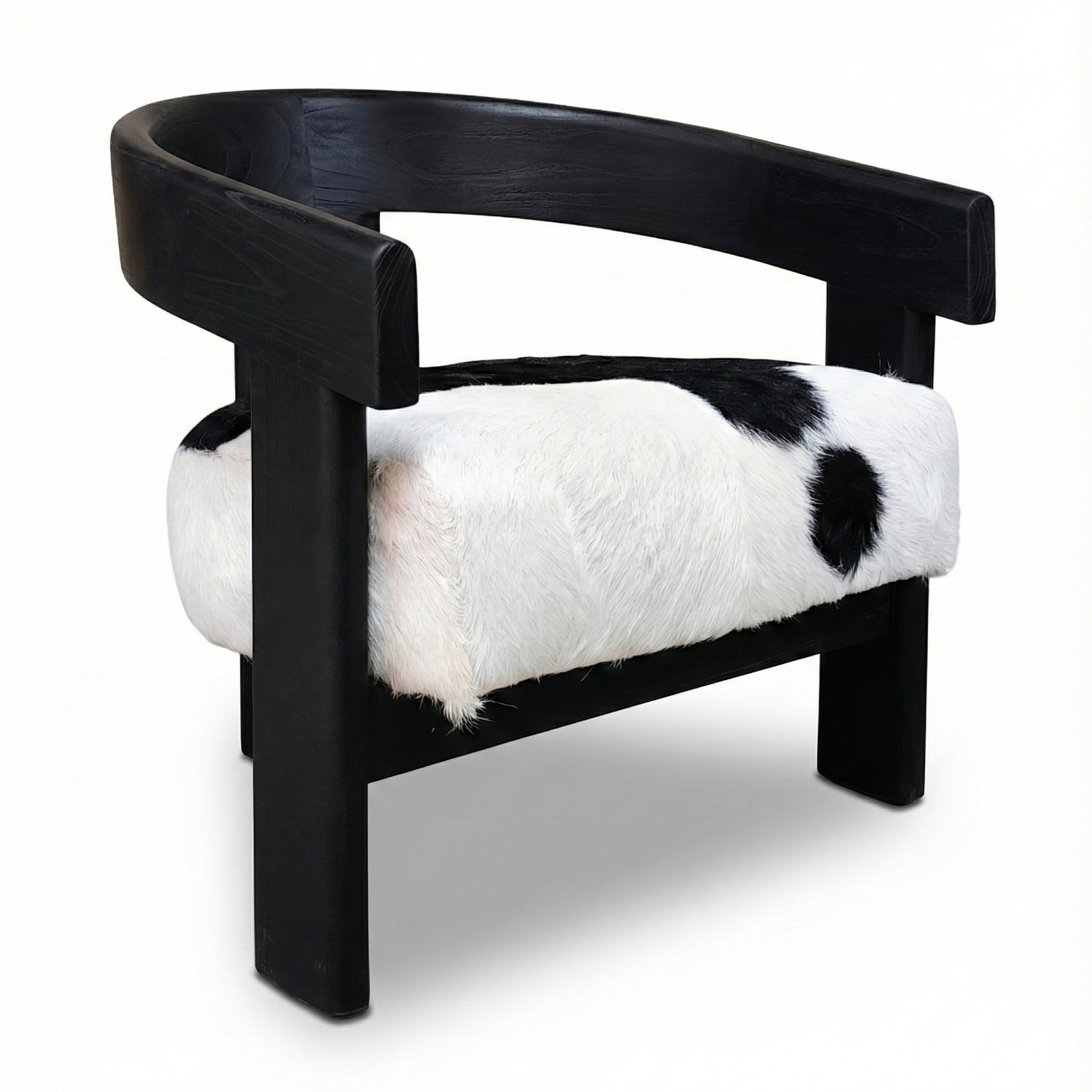 59x58x103 cm Teak Wood - Black Color Cow Leather - Mix Black/White